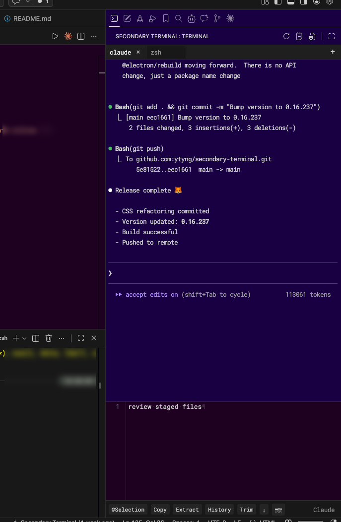 - サイドバーターミナル: VSCode のサイドバーに統合されたターミナル